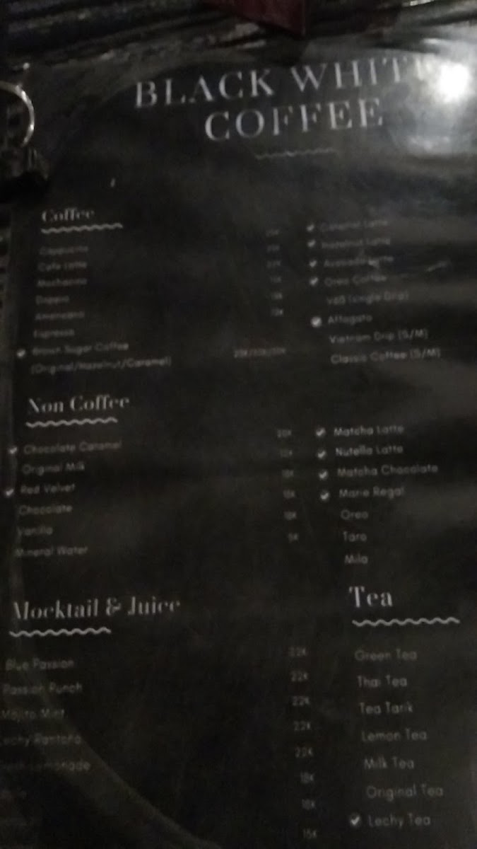 Black White Coffee Cafe Menu